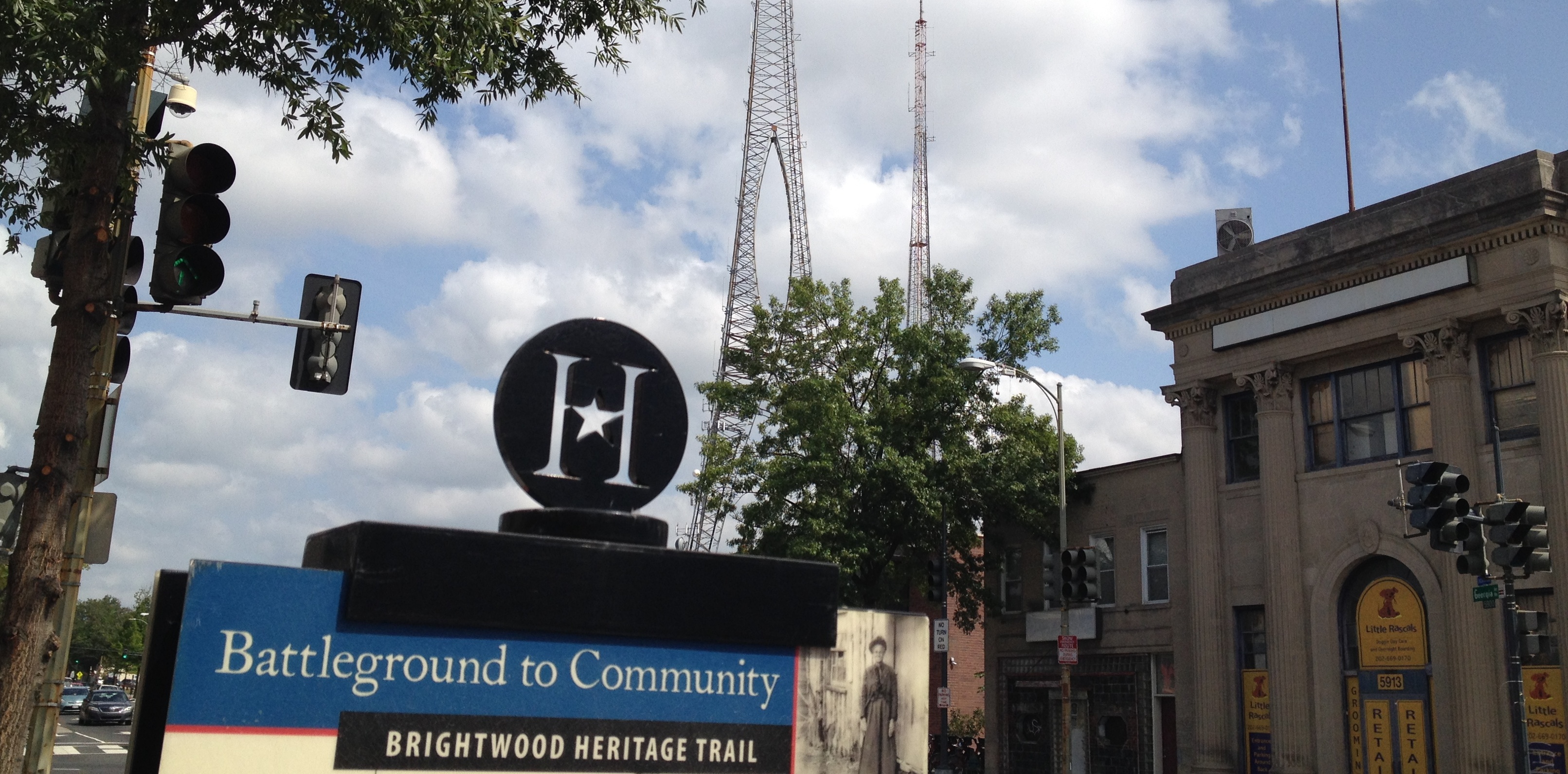 We decided to get to know this other dimension of D.C. and follow a whole trail from start to finish. We picked Brightwood Heritage Trail because it included the only battle of the Civil War fought in the boundaries of the District of Columbia. Over Labor Day weekend, we walked up to the starting point and wandered around Brightwood in the high sun of midmorning.