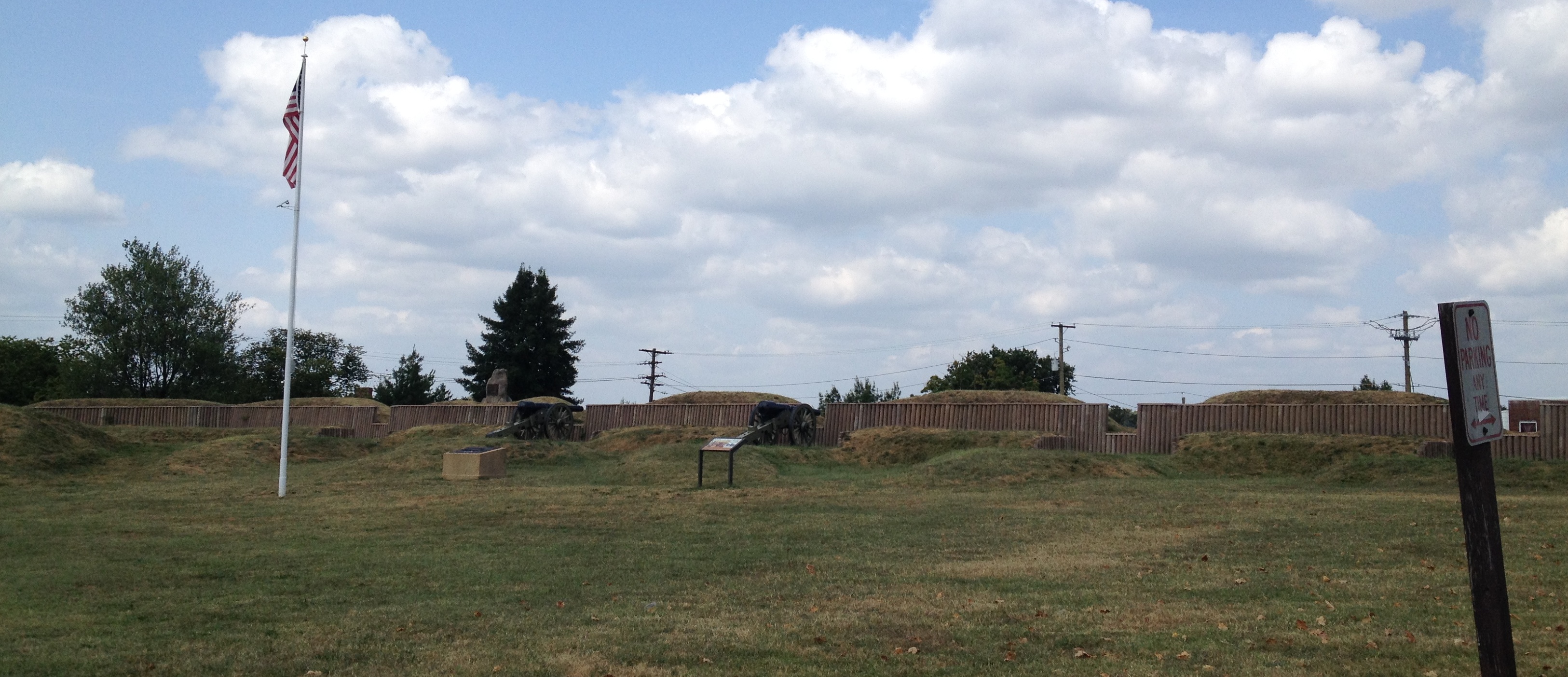 The northernmost marker is one of the smallest national cemeteries in the U.S. They buried 41 Union soldiers here after the Battle of Fort Stevens. Abraham Lincoln spoke at the dedication, after witnessing the battle first hand. The sandstone building on it now houses a tidy National Park Service office, but no one was in to show us around.
